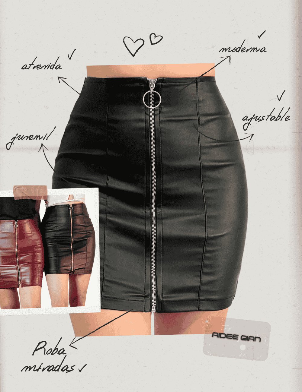 Short Falda Mujer Vinipiel Pu Y Aro Metálico